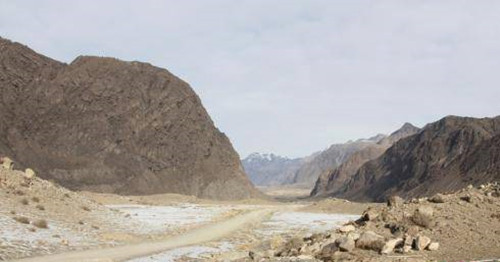 遠(yuǎn)遠(yuǎn)看去,破城子關(guān)隘就像一個(gè)U型口,被大自然的鬼斧神工塑造于山谷之間,有一夫當(dāng)關(guān),萬夫莫開之勢(shì)。木扎提河就是從山谷里一瀉而下,流向拜城縣境內(nèi),并形成下游的渭干河。以木扎提河為界,河?xùn)|、河西分別為拜城縣和溫宿縣的地域。