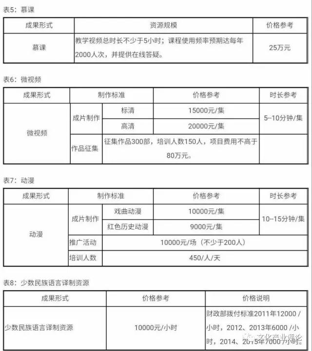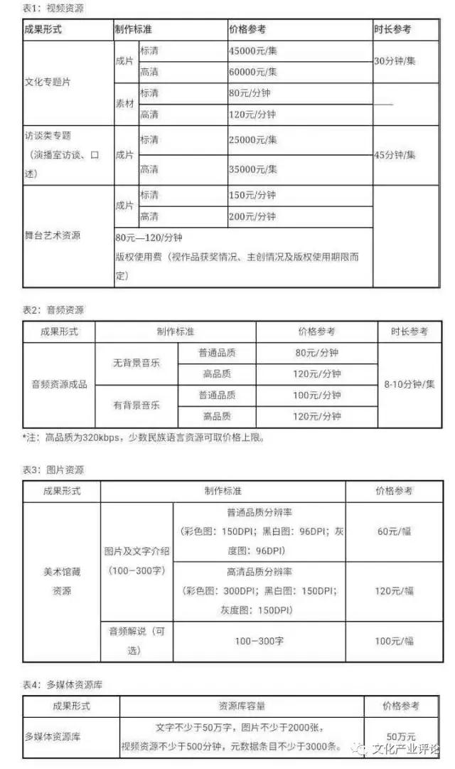 (3)參考全國(guó)文化信息資源共享工程2011年度地方資源建設(shè)工作指南地方資源建設(shè)價(jià)格參考標(biāo)準(zhǔn)、市場(chǎng)價(jià)格浮動(dòng)情況及近幾年各地在實(shí)際工作中的反饋情況,制定2018年度地方資源建設(shè)價(jià)格參考標(biāo)準(zhǔn)。(見表1、表2、表3)