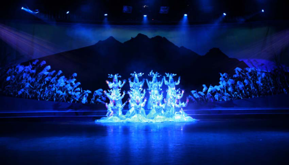 二、項目主要內(nèi)容:1.改造舞臺面積847.8㎡;2.改造觀眾席面積為900㎡;3.新增2套面光系統(tǒng)、頂光系統(tǒng)、逆光系統(tǒng)、側(cè)光系統(tǒng)、追光系統(tǒng);改造2套效果燈系統(tǒng);3.更換音響15臺;4.新增道具500套;5.新增舞美特技4個;6.新增服裝1000套;更換LED顯示屏1個(8m*15m);9.制作LED顯示屏內(nèi)容?!兑淮祢湣び肋h的成吉思汗》演藝內(nèi)容主要包括三場,即《英雄的崛起》、《文明的交融》、《永恒的祭奠》。