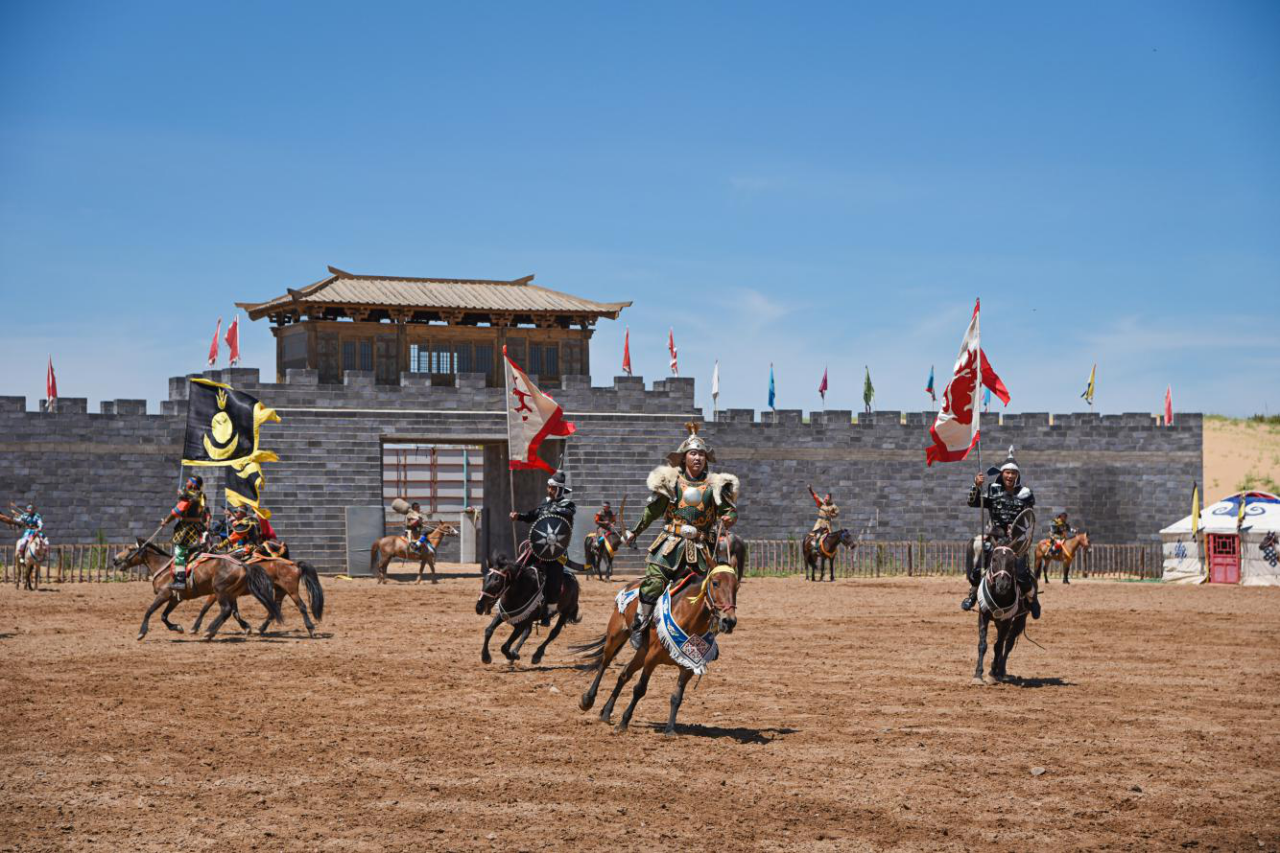 項目主要建設(shè)內(nèi)容為:文化演藝中心、大型馬術(shù)表演場、大漠寶藏館場館等建設(shè)內(nèi)容。項目緊緊圍繞挖掘弘揚民族優(yōu)秀傳統(tǒng)文化,推動旅游文化融合發(fā)展,以文化產(chǎn)業(yè)休閑娛樂為著力點,以市場為導(dǎo)向,引進大型馬術(shù)實景劇《永遠的成吉思汗》駐場演出(60人)、創(chuàng)作編劇《吉祥神泉》在演藝大廳隆重上演(50人)蒙古族歌舞表演、江西飛龍藝術(shù)團(28人)、購買馬匹70匹、音響、道具等舞臺裝飾。此外建設(shè)三個場館(同時容納2000人)表演場地及觀眾席修建、演藝大廳(同時容納1000人)舞臺、燈光、演員化妝間建設(shè)、大漠寶藏館展出奇石、民俗展覽(同時容納800人)新建項目。該項目目前進展順利,引進演出費已全部支付,馬術(shù)表演實景劇、吉祥神泉劇正在排練之中,舞臺、燈光、演員化妝間、LED顯示屏正在建設(shè)之中,大漠寶藏館內(nèi)部裝修、布置、廁所改造進一步完善,馬術(shù)表演場改擴建、燈光、音響等設(shè)備進一步完善加強。