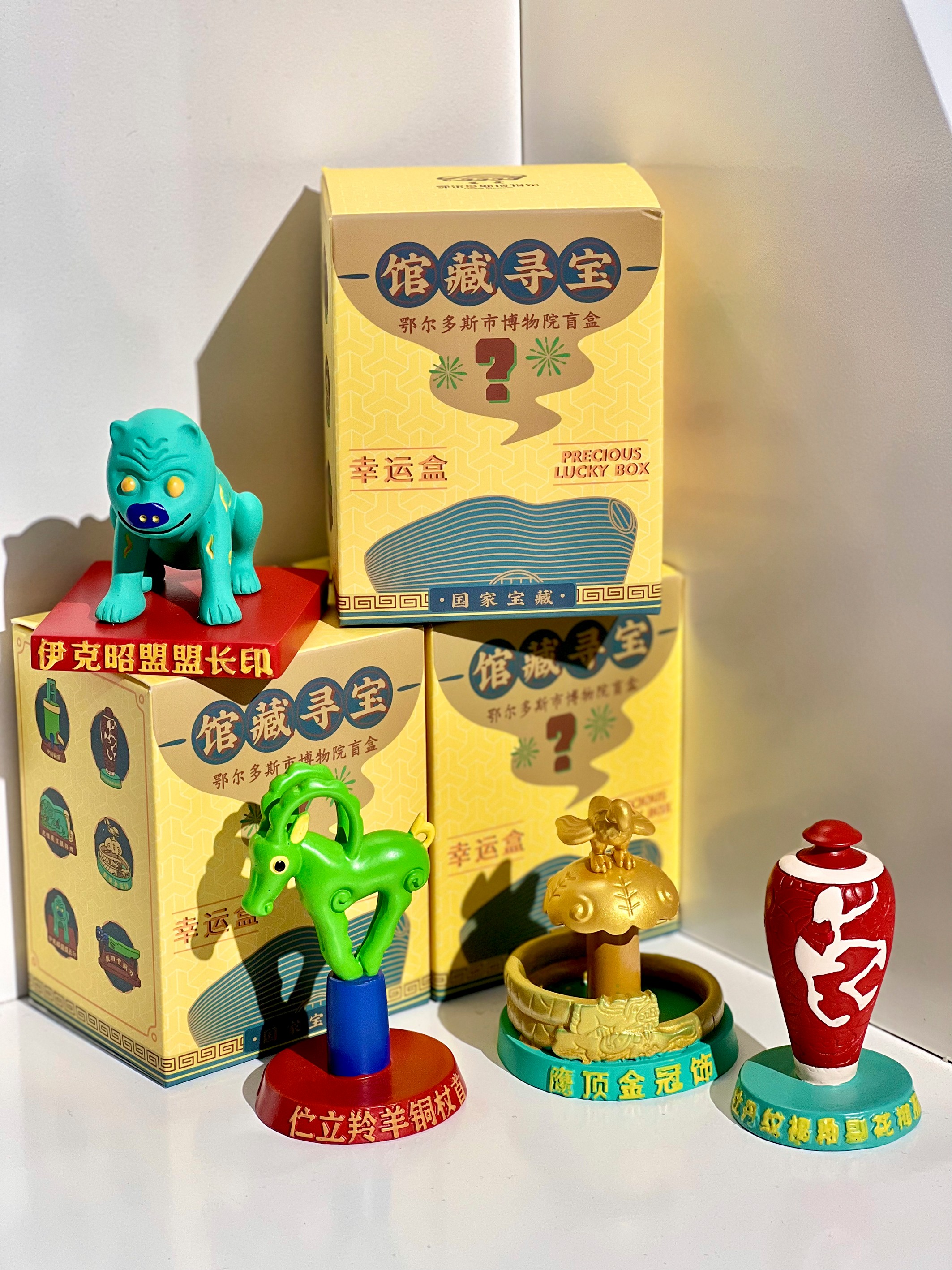 選取鄂爾多斯市博物院代表性文物,提煉設(shè)計(jì)為卡通版文物擺件,一套七款,盲盒包裝增加未知性、趣味性,同同時(shí)讓大眾了解領(lǐng)略鄂爾多斯文物之美。