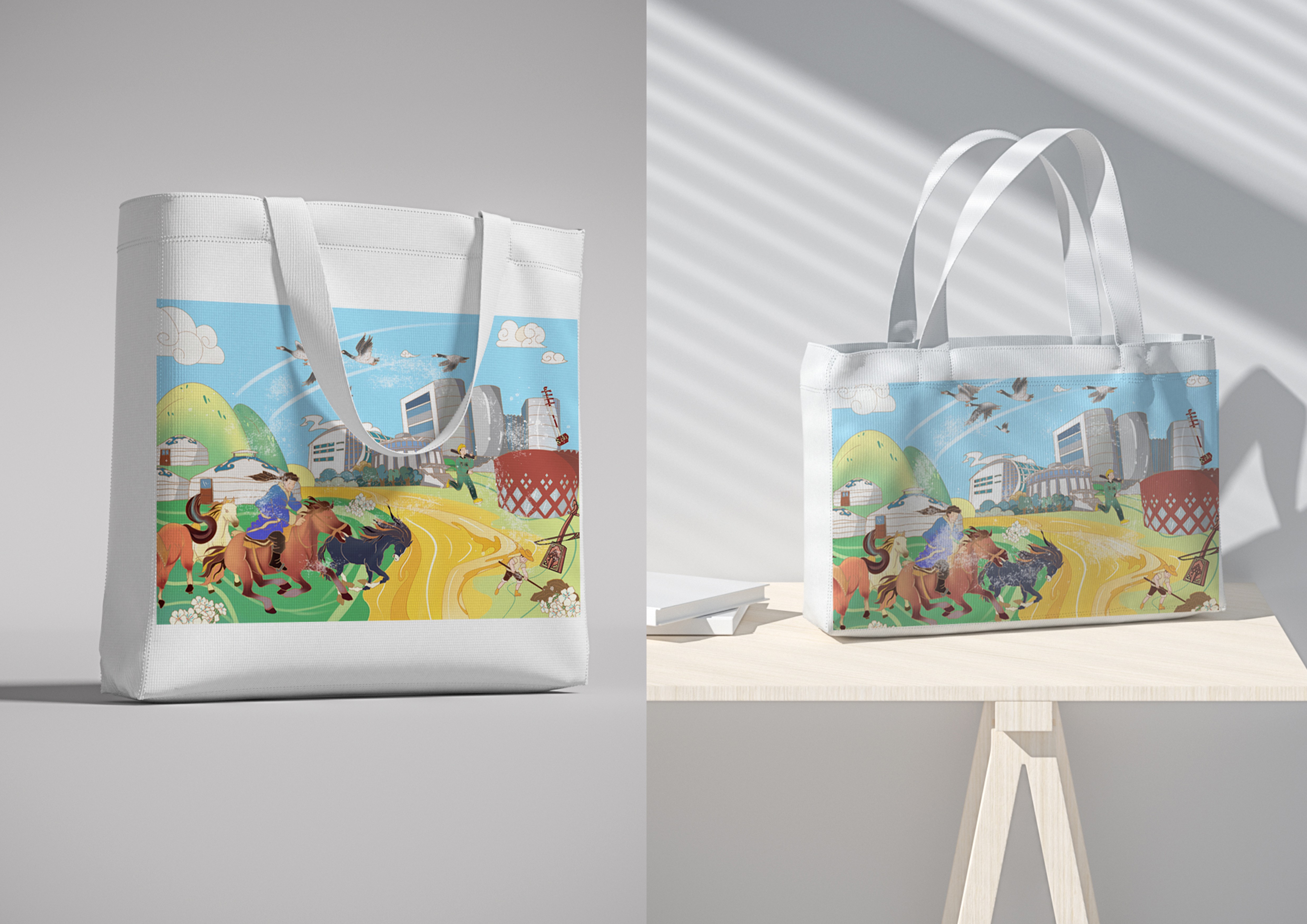 設(shè)計(jì)理念:主旨表達(dá)人民勤勞奮斗”轉(zhuǎn)變“美好家園,由左邊的草原發(fā)展到現(xiàn)代化的都市,中間由黃河分隔,同時(shí)還保留優(yōu)秀傳統(tǒng)文化,激發(fā)游客及當(dāng)?shù)厝斯睬?、加深城市記憶點(diǎn)。具體元素采用鄂爾多斯的博物館,圖書館,黃河幾字彎等,還有蒙古包、馬頭琴等民族特色元素。