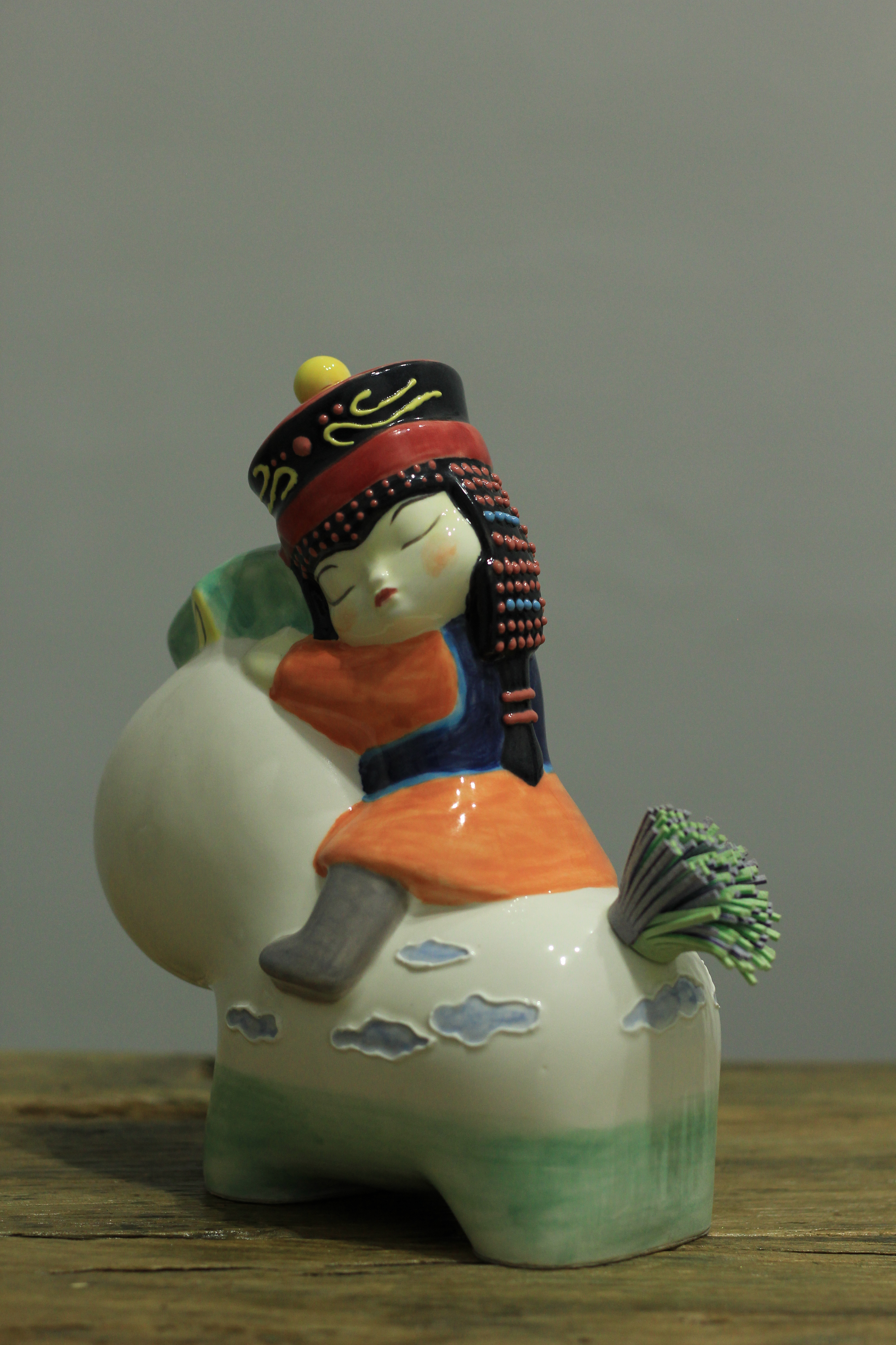 創(chuàng)作思路:草原夢(mèng)娃以鄂爾多斯蒙古族騎馬的小女孩原型,陶瓷結(jié)合皮質(zhì)馬尾。塑造呆萌可愛(ài)的形象,以夢(mèng)為馬,不負(fù)韶華。男兒三藝作品以草原男兒三藝博克 賽馬 射箭 為原型設(shè)計(jì)。讓傳統(tǒng)草原文化,走進(jìn)生活。
