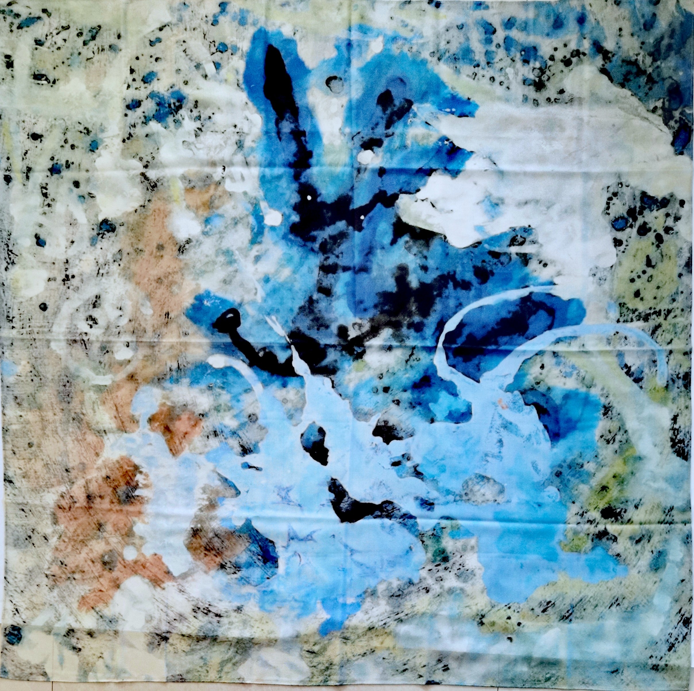 設(shè)計理念:以畫作設(shè)計成羊絨披肩,是畫家心情的真實表達和率性而作。