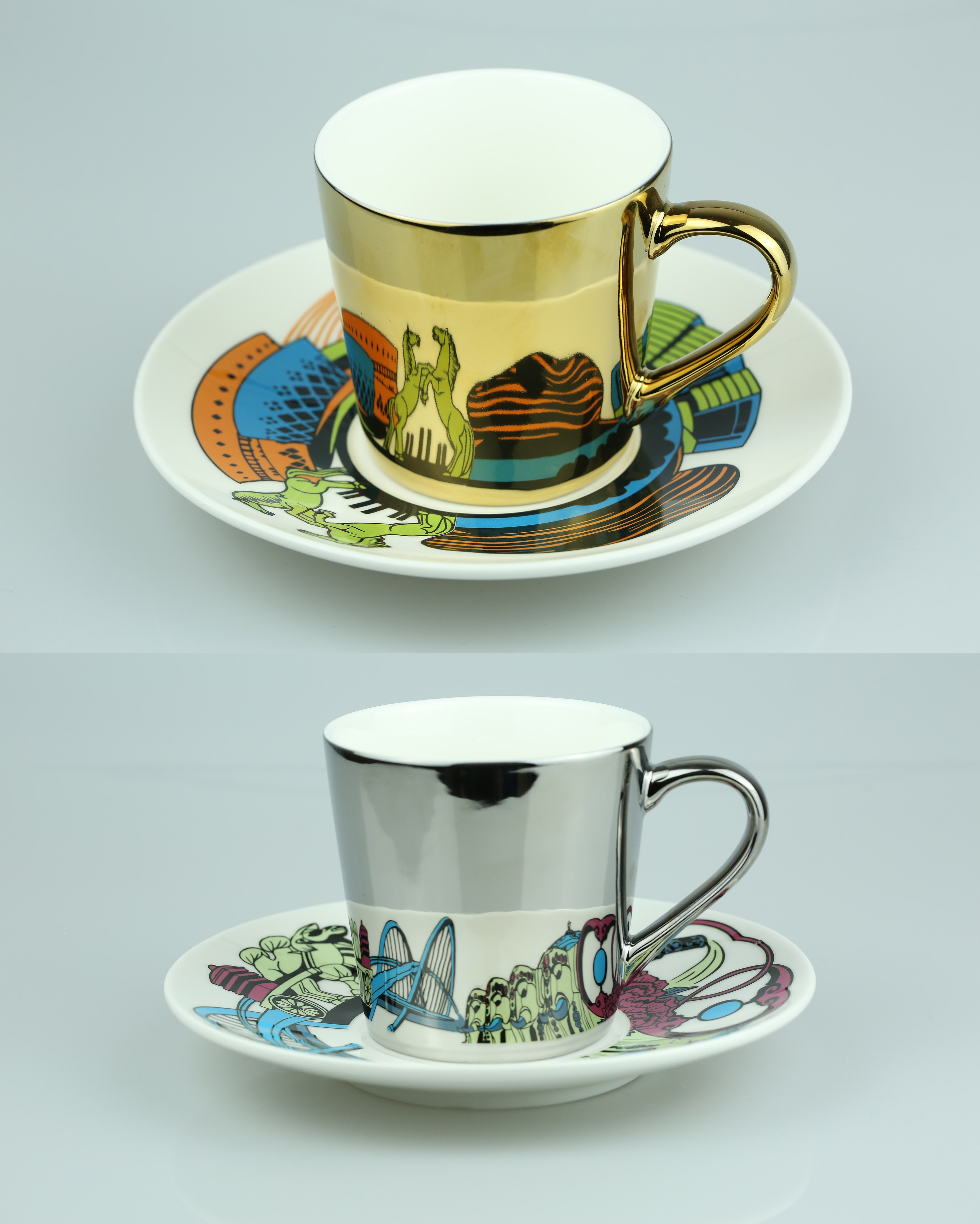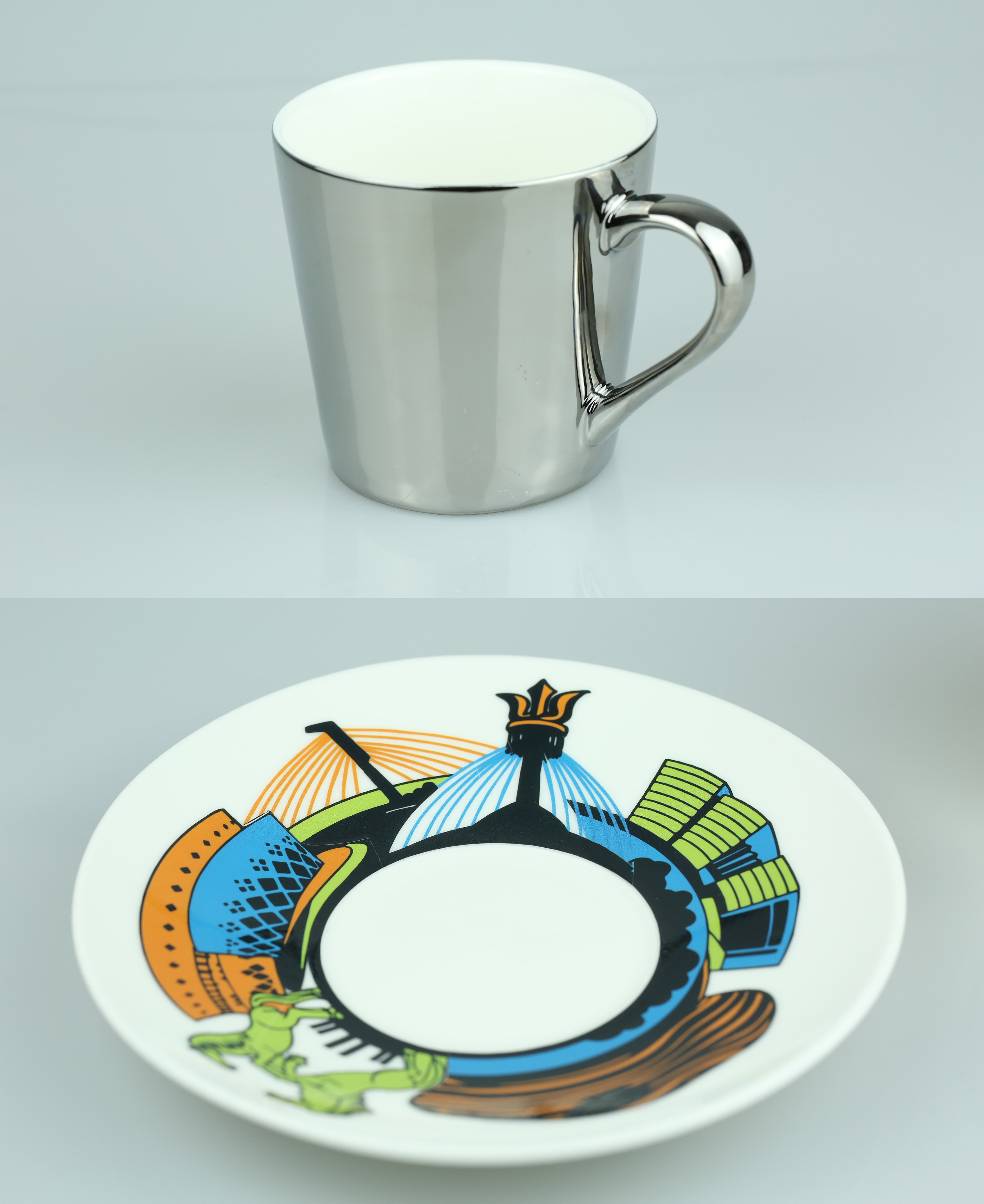 材料工藝:瓷體電鍍,貼花紙。銀勺壓鑄,激光刻字