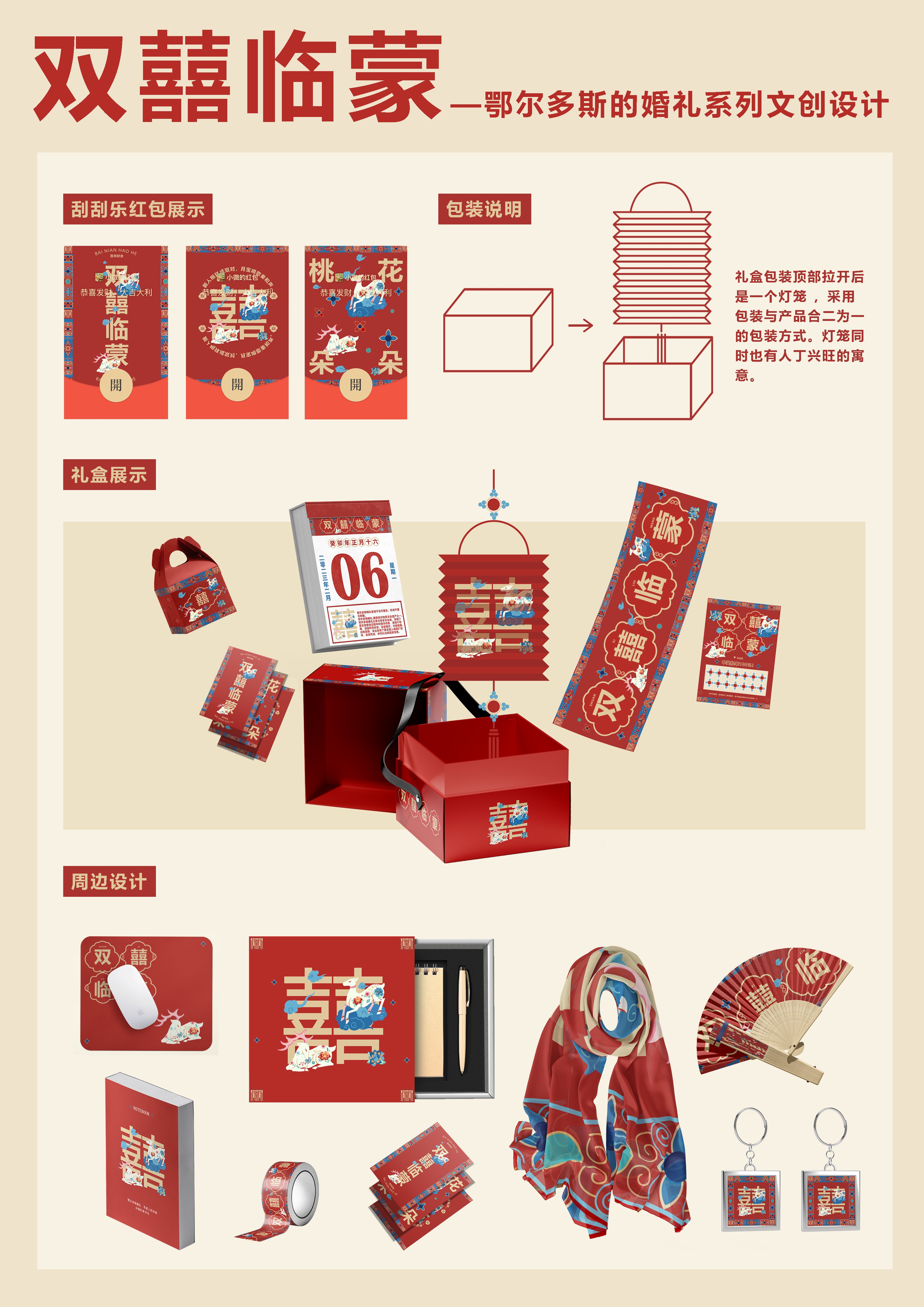 創(chuàng)作思路:鄂爾多斯婚禮是非物質(zhì)文化遺產(chǎn)之一,該設(shè)計(jì)以鄂爾多斯的婚禮為設(shè)計(jì)主題。