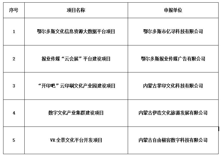 鄂爾多斯市文化和科技融合示范項(xiàng)目名單