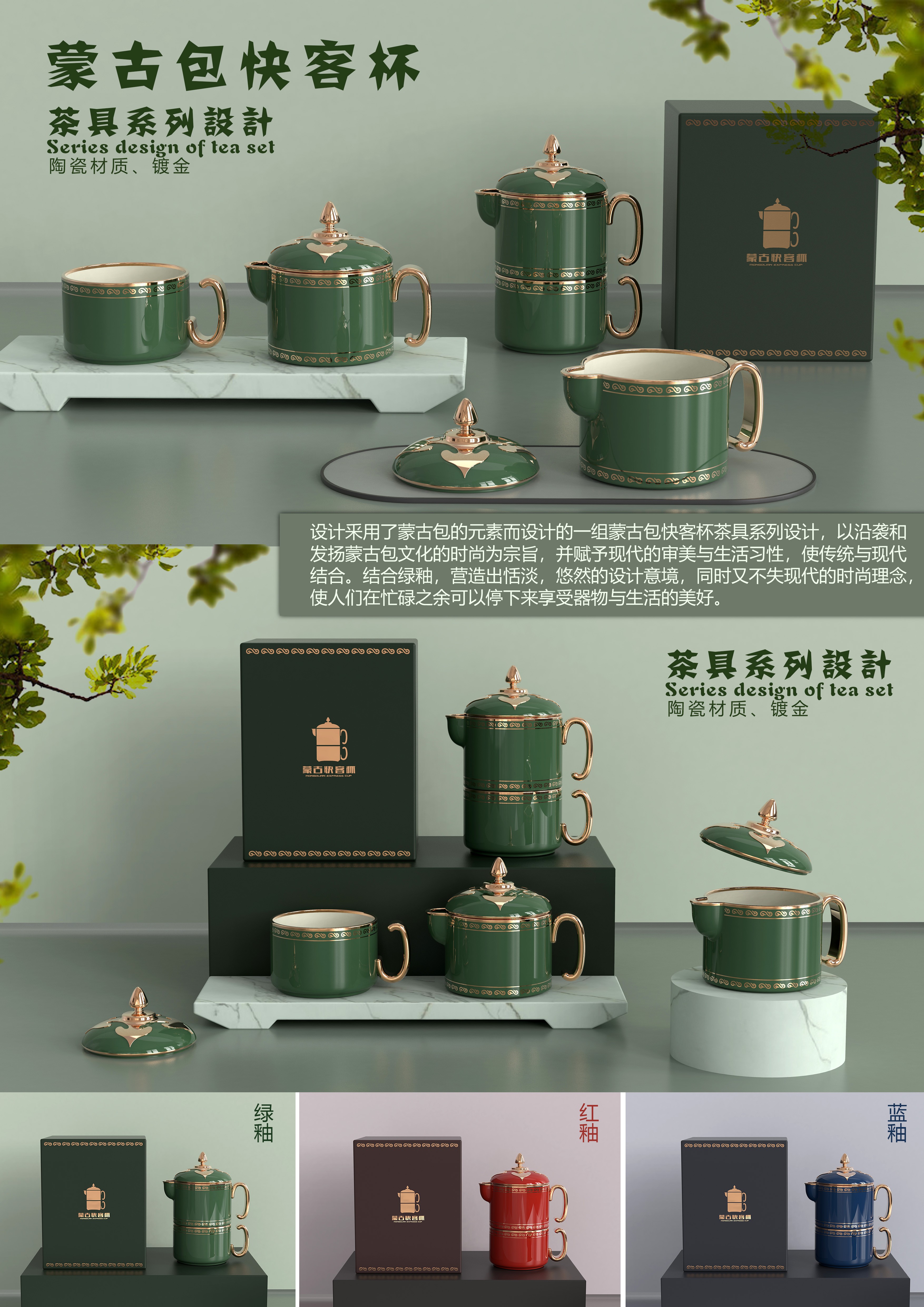 設(shè)計(jì)釆用了蒙古包的元素而設(shè)計(jì)的一組蒙古包快客杯茶具系列設(shè)計(jì),以沿襲和