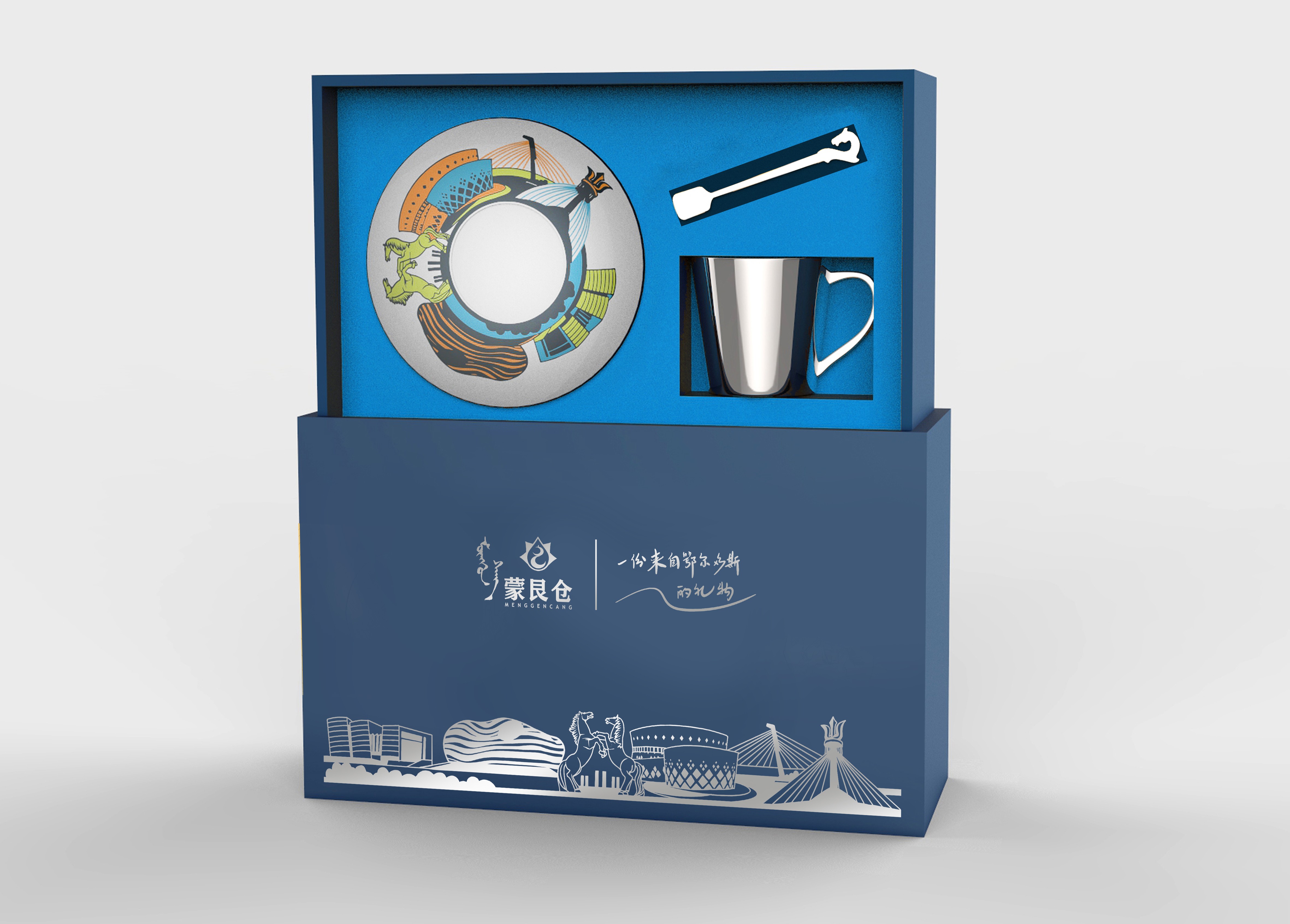 設(shè)計理念:采用純銀的攪拌勺可以起到殺菌消毒的功效,而攪拌勺外觀為經(jīng)典的馬頭琴造型,上面激光雕刻文字:鄂爾多斯 一座有溫度的城市。奶茶杯通過倒影的形式將城市的點點滴滴娓娓道來.